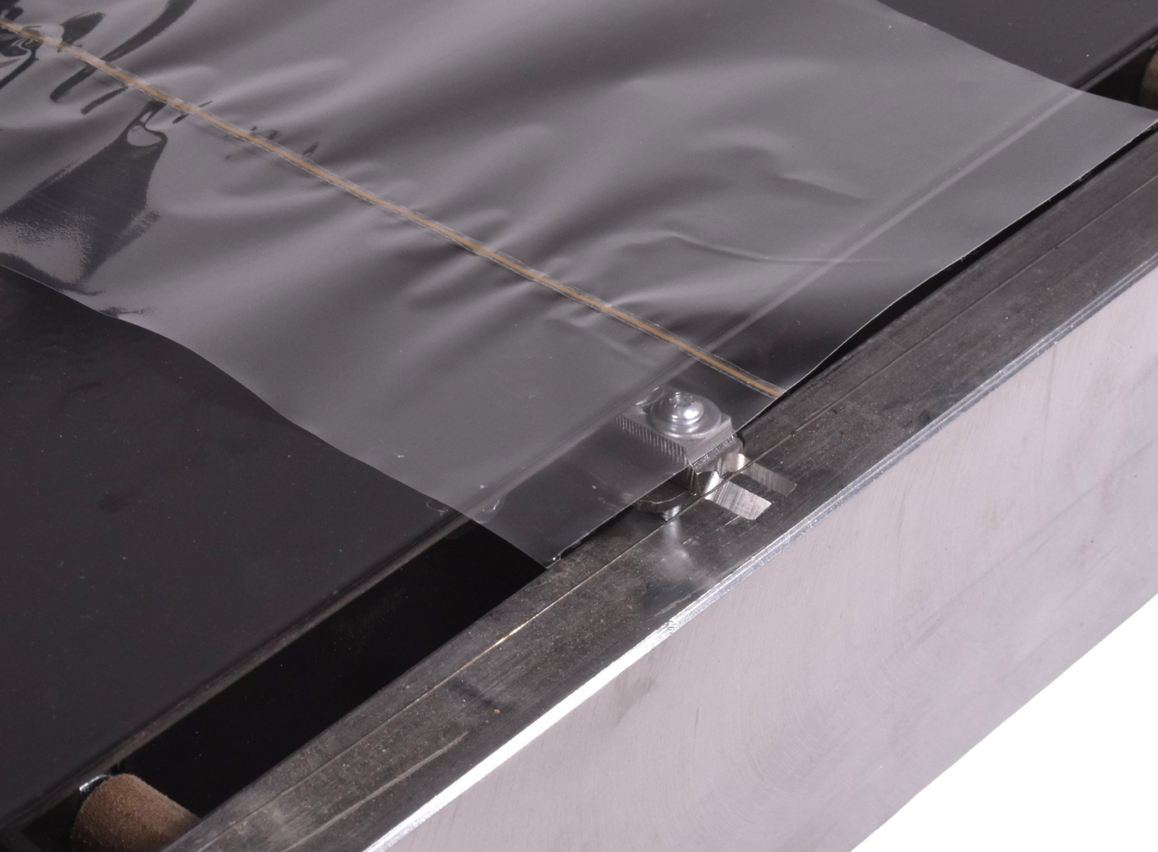 The second key feature of TapeTear Pro is a precise tear tape guiding mechanism combined with a foil alignment element. It guides the foil and tape in a way that prevents uneven placement and ensures a clean finish.