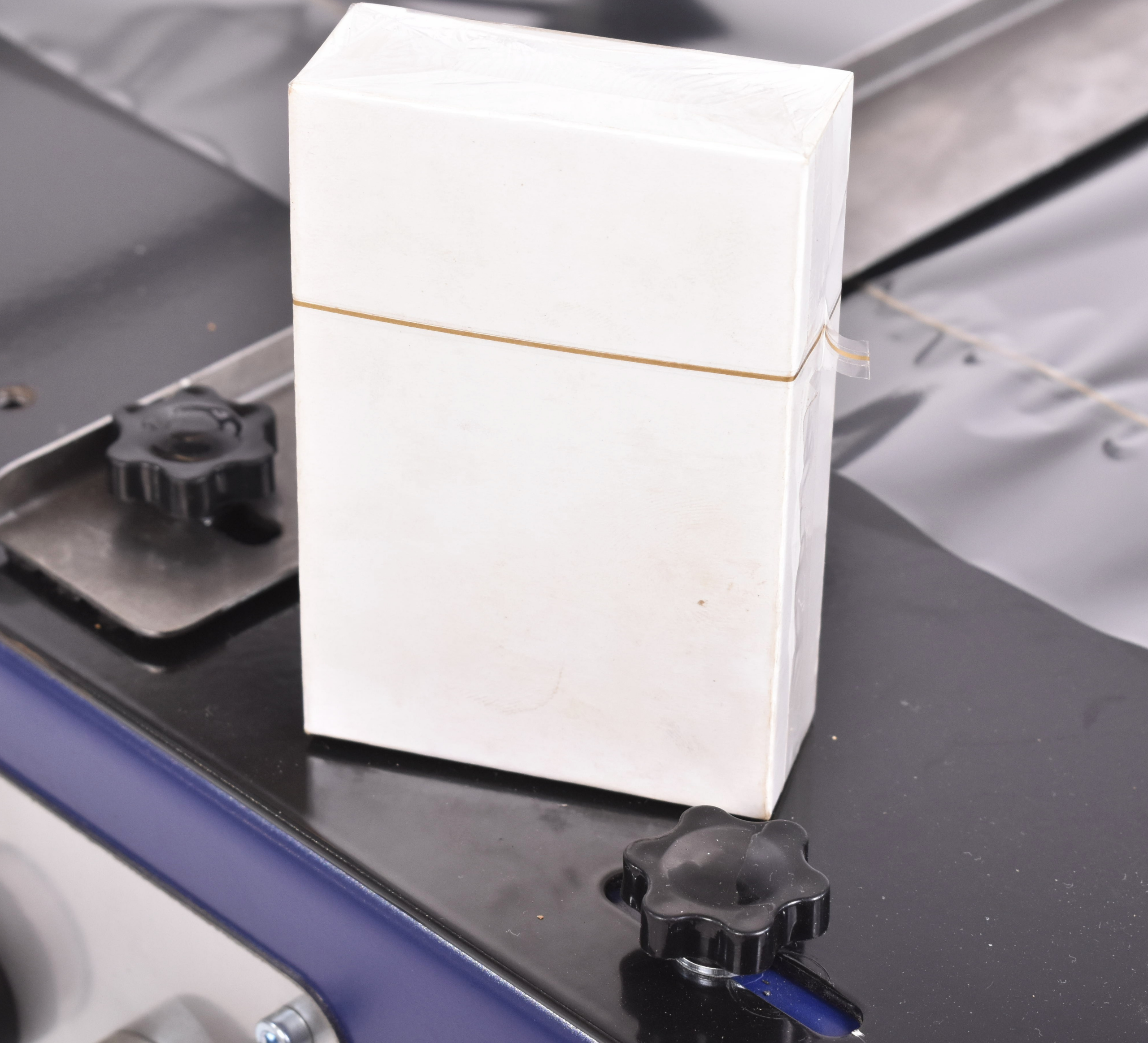 Huzark TapeTear Pro is a modern manual cellophane wrapping / overwrapping machine designed for users who require a flawless, premium finish comparable to the results produced by large and expensive industrial wrapping machines. It is ideal for packaging cardboard products such as cigarette packs, perfume boxes, cosmetics, and other carton packages with a regular shape.
